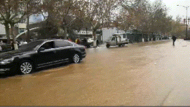 西安供水管道爆管道路被淹