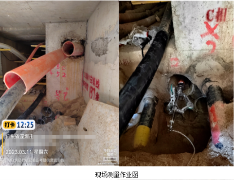 大鐵陀螺儀,江湖利器,不畏現場險惡,測得就是準!話不多說,開挖驗證:案例一:廣州地鐵7號線二期盾構掘進工程,為防止干涉既有110千伏運營電力管道,受業主委托,擇群管中一預留管道(DN200)進行了三維軌跡慣性定位測量,實測管道長度為102.9米,現場給出測量軌跡并實時放樣與導向數據比對。后因與導向埋深偏差較大而開挖驗證,以測量埋深精準而備受客戶贊賞,本次開挖也再一次驗證其相對于傳統探測方法的優勢。