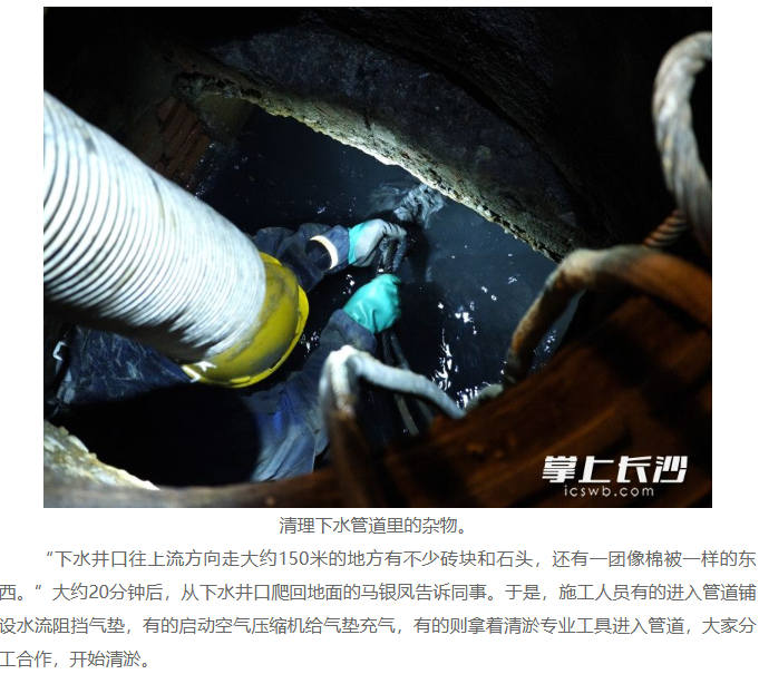 據長沙晚報掌上長沙(全媒體記者 賀文兵)報道,穿上防水服,戴好頭燈,系上安全繩,馬銀鳳在同事的協助下,鉆入下水道。此刻,時針已指向16日凌晨1時20分,芙蓉區晚報大道上,馬銀鳳等一群“夜行者”正在對該路段的地下排水管網進行把脈清淤。